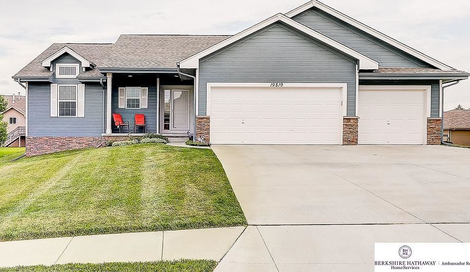 Wonderful 2 year new ranch built by Lane Bldg. Corp.; 5 BR, 3 Bath, 3 car garage; wood floors on main; open floor plan w/ windows for extra light; Kitchen has granite counter tops, huge walk-in pantry, eat-in kitchen. Security & sprinkler system, covered front porch & back patio; huge corner lot, apoxy garage floors; kitchenette in bsmt to be finished mid-Feb; finished bsmt perfect for entertaining & 2 bedrooms in bsmt w/ 3/4 bath; laundry is connected to MBR closet. Close to Elkhorn South!