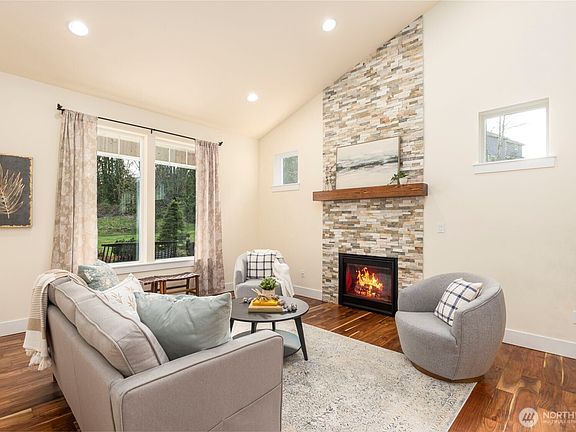 Turn-key rambler on over an acre! This beautifully maintained home features an open-concept design with vaulted ceilings and a cozy stone fireplace. The chef’s kitchen boasts a large island, stainless steel appliances, and stylish two-tone cabinetry, flowing into the dining area and out to a 280 sq. ft. Trex deck overlooking the expansive backyard. The primary suite offers a 3/4 en-suite bath with a teak wood seat in the walk-in shower. Down the hall, two additional bedrooms, a full bath, and a convenient laundry room off the garage provide comfort and functionality. A heat pump ensures year-round efficiency. Enjoy privacy and tranquility while staying centrally located near schools, shopping, and amenities!