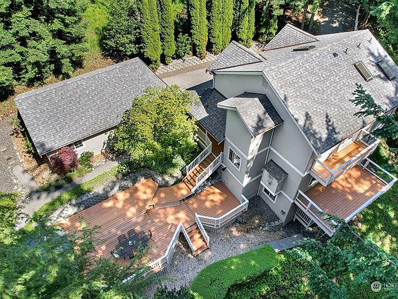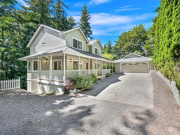 Discover this immaculate south Bellingham home within a few blocks to Lake Padden Park with miles of Trails, Golf and minutes to historic Fairhaven. This move-in-ready home offers high-quality craftsmanship throughout. Enjoy the park-like setting with absolute privacy and partial Bay views. Entertaining kitchen with nook and bar seating, opens to the family room with a gas fireplace. Formal dining and main floor den or living room. Primary with luxury ensuite and walk-in closet. Finished basement with a full bath plus fireplace, ideal for a mother-in-law suite. Exceptional outdoor living with a walk-around porch, gazebo, huge backyard deck and fire pit area. Ample parking. Detached garage with workshop area. A magical Southside wonderland!