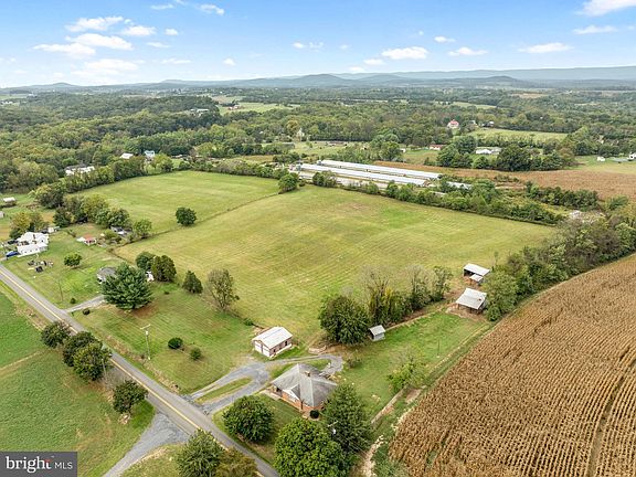Welcome to this beautiful farmette nestled on 14.3 acres, spanning three parcels of open, usable land—perfect for farming, animals, or simply enjoying the peaceful country life. The charming brick ranch home offers one-level living with 3 bedrooms, 1 full bath, and gorgeous hardwood floors throughout. The inviting covered front porch overlooks stunning mountain views and opens into a bright living room featuring gleaming hardwood floors and a cozy fireplace with a wood stove insert. The living room flows into the dining area and spacious kitchen filled with natural light. Off the kitchen, you’ll find a convenient laundry/mudroom with access to the backyard. The full unfinished basement offers ample potential for additional living space or storage and includes a walk-out to the side yard and driveway. Outside, the property is complete with a large detached two-car garage, barn, pole shed, and storage shed—plenty of room for equipment, animals, or hobbies. Enjoy the mature trees, grapevine, and open fields that make this property a true country retreat. Ideally located, this farmette offers both privacy and convenience—ready for anyone dreaming of a small farm or simply a peaceful place to call home.