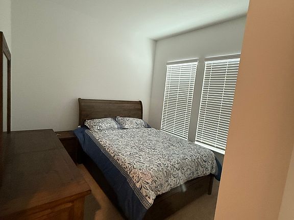 Secluded primary suite with plush carpeting & generous walk-in closet.