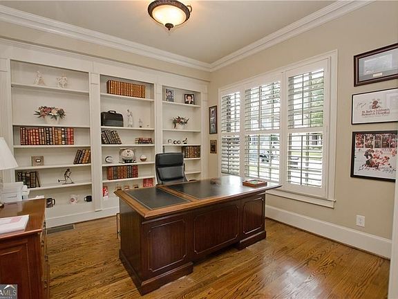 Location, Location, Location! Discover timeless Sophistication in this exceptional Monte Hewett-built brick home offers timeless elegance, exceptional craftsmanship, and thoughtful upgrades throughout. Ideally located with easy access to Truist Park, The Battery, Home Depot HQ, major highways, shopping, and dining-this home truly has it all. This stately residence exudes craftmanship and style across all three levels, with rich hardwood floors, soaring ceilings, custom millwork. A welcoming two-story foyer leads to a spacious, open floor plan designed for refined living and effortless entertaining. A formal dining room with a butler's pantry offers the ideal setting for elegant dinner parties, while a private home office with custom built-ins bookcases provides both functionality and charm perfect for work from home professionals. At the heart of the home is a chefs dream kitchen featuring stainless steel appliances, double ovens, stained cabinetry, granite countertops, a large center island, and a generous walk-in pantry. The kitchen flows seamlessly into the impressive great room, complete with exposed wood beams, a striking stone fireplace with gas logs, custom built-ins bookcases, a wall of windows and a wet bar with a wine cooler. Retreat upstairs to a luxurious primary suite complete with a private sitting area, trey ceiling, and spa-inspired bath featuring dual vanities, a whirlpool tub, frameless glass shower, and a fully customized walk-in closet. Three additional spacious bedrooms ensure versatility for family, guests, or a second office. The fully finished terrace level-featuring a custom bar, wine cellar, fireside den with built-ins bookcases, exercise room, full bath, and a spacious game/billiards room for hosting in style. Seamless indoor-outdoor living includes a serene, screened porch, open-air deck, and a lower-level patio overlooking the professionally landscaped, irrigated yard-your private oasis in the city. This distinguished home combines elegance, comfort, and convenience in a premier community-offering a lifestyle of true luxury