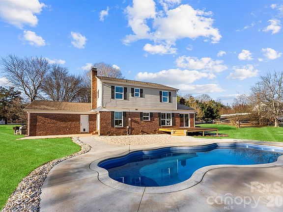 The bright, spacious kitchen features quartz countertops, brand-new appliances including a built-in cabinetry microwave, and ample workspace—ideal for both everyday living and entertaining. With 4 bedrooms and 2.5 baths, the layout is both versatile and inviting. The primary suite offers a large closet and a private ensuite bathroom. Downstairs you will find a flex room with a wood burning fireplace waiting for you to turn it into your dream space. Outside you can enjoy the large two-acre lot and brand-new in-ground saltwater pool, perfect for summer gatherings or quiet evenings at home. This move-in-ready property combines modern finishes and a prime Clover location.