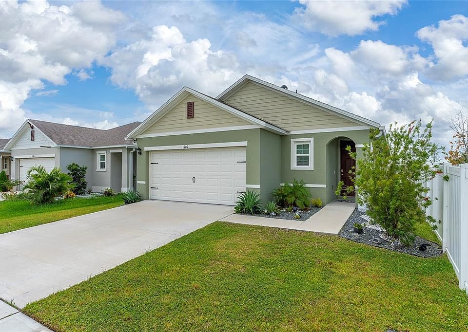 Discover this beautiful 3-bedroom, 2-bathroom single-family home in the desirable Kindred community of Kissimmee. Built in 2023, this move-in-ready residence offers an open and spacious layout with 1,516 sq ft of living space and a 2-car garage. The modern kitchen features stone countertops and contemporary cabinetry, flowing seamlessly into the main living and dining areas. Luxury vinyl plank flooring and stylish finishes add a touch of elegance throughout. Enjoy peaceful lake views right from your backyard — perfect for relaxing or entertaining. Located in a resort-style neighborhood, Kindred offers amenities such as a clubhouse, swimming pool, fitness center, playgrounds, and walking trails. Conveniently close to major highways, shopping, and schools. This vacant home is ready for its new owners — schedule your showing today!