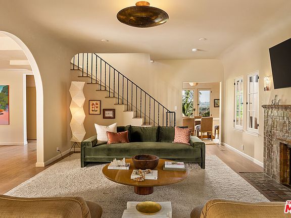 Elegant design, luxurious finishes, and sweeping views define this 1926 Spanish Colonial in one of Los Feliz's most sought-after enclaves. The home has been meticulously designed, and all systems have been upgraded over the past two years. Upon entering, you are greeted by a living room that exudes warmth and grandeur with arched windows, coved ceilings, Italian Murano sconces, and a classic fireplace. A chef's kitchen with Wolf appliances, stone counters, and Waterworks fixtures flows into a window-lined dining room overlooking the backyard and skyline. With five bedrooms and four bathrooms, the home offers abundant space and flexibility. Each upstairs suite includes an en suite bath and opens to private sunlit decks with Zia marble tile and views of the Griffith Observatory and surrounding hills. The lower level offers a screening room, den, two guest suites and a cedar sauna. The extraordinary outdoor living spaces were crafted by AD100 landscape designers Terremoto, featuring native plantings, gardens, fruit trees, redwood decking, cedar jacuzzi, and custom fencing. Located just moments from local favorites on Vermont and Hillhurst and steps from the scenic trails of Griffith Park. This timeless turnkey Los Feliz home is a rare blend of architectural heritage and modern luxury.