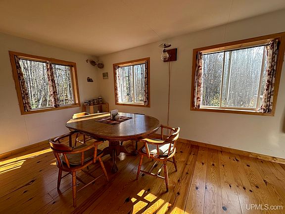 Looking for a rustic cabin that feels like home? Take a look at this one-bedroom cabin that boarders Ottawa National Forest. Taking care of this place is a breeze since it has a metal roof and siding. Inside you will find an open concept floor plan. The windows not only let in an abundance of natural light but gives one the opportunity to enjoy nature at every turn. Recent updates to the cabin include a new wood stove, designated kitchen wall, kitchen cabinets, granite countertops, wall furnace and running electric from the generator into the cabin. Outside there is extra storage in the form of an old trailer. The front half was used for general storage and the back half for the generator and a 4-wheeler. Title comes with the trailer. The driveway was updated from a bumpy two track into a drive around driveway. Now, there is plenty of room to drive in and park trucks and trailers. Enjoy the last of UP fall days and take a drive out to see if this little gem just might be your next Yooper adventure.