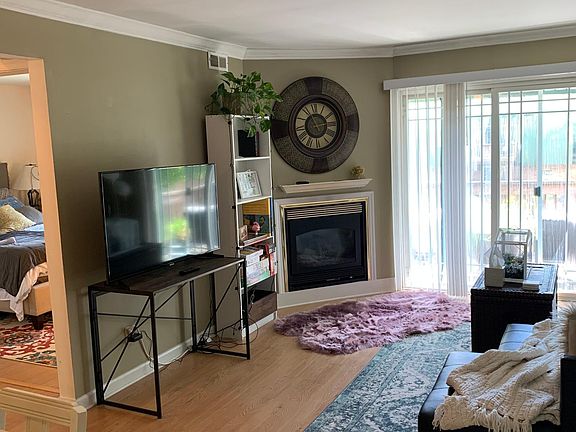 Top floor condominium unit, laminate wood floors in bedrooms, hallway and living room, large-size-tile floors in doorway, and ceramic tile floors in kitchen and bath rooms. Easy-to-use gas fire place and in-unit laundry. The hallway bath offers a jet bathtub. Central AC and heat. Gas (used by heat, stove, dryer, fire place, and hot water), water, garbage and landscaping are all included in the rent. Minutes walking from park and bike trails. Very close to I-88 and outlet mall. Master bedroom size 16X12, with large ceiling fan. Second bedroom size 12X12. Living room. dining room size 21X13, with large ceiling fan. Kitchen size 15X10, combined with eating area (Table Space), with ceiling fan. Qualified applicants only - must have minimum 670 credit score with good rental history, and monthly gross income of three times of the monthly rent. All adult applicants will need to pass a credit and background check. $30 application fee per person. Will be available for moving in on Aug 5th, 2025. Two large balconies. One storage room; Two guaranteed parking spaces; Free guest parking spaces. Tenant responsible for electricity, phone and cable/internet only. Owner pays for all others. No smoking.