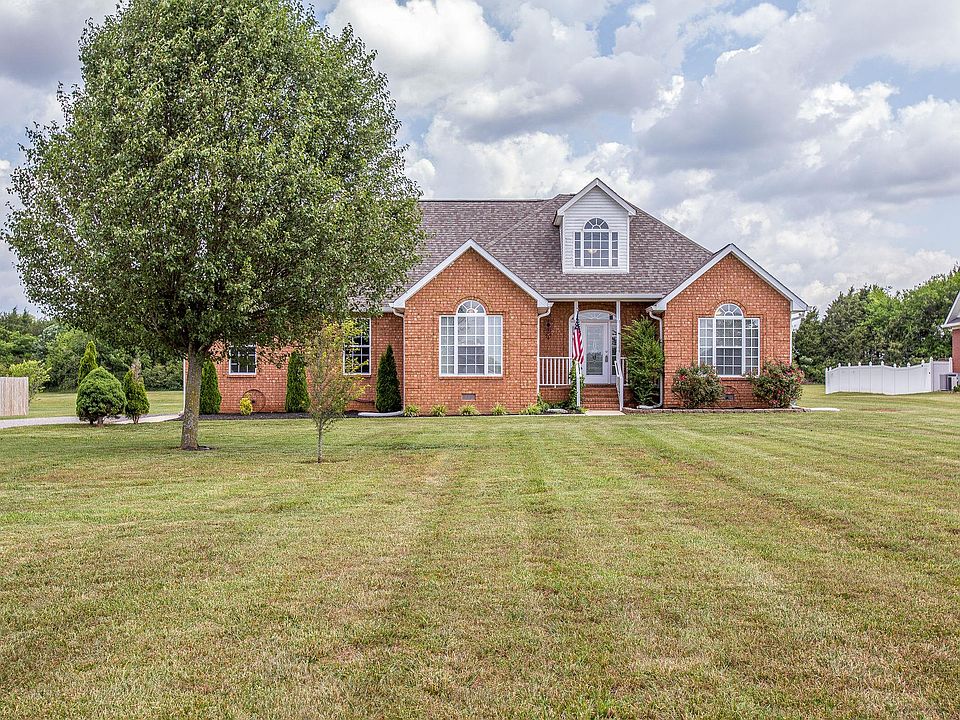Beautiful home nestled on 1.5 ACRES of level land! Vaulted ceilings soar through great room and bedrooms, NEW laminate hard floors, newly finished bonus room upstairs, walk in storage in attic, tile floors in bathrooms, spacious owners suite, enjoy the upcoming summer nights on your covered back patio! The view at sunset is one you wont want to miss. Largest lot by over .5 acres available now in community & surrounding communities! 30 min from Murfreesboro and 20 min to Spring Hill.