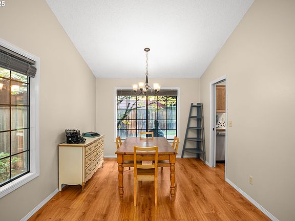 OPEN SAT 10/25 12-2 & SUN 10/26 1-3! Spacious 2-level home tucked back at the end of a quiet street with plenty of privacy! Inviting entryway with skylight, vaulted ceilings, and tons of windows throughout offering plenty of natural light and beautiful views of trees and foliage. Huge fenced backyard with newer deck, perfect for entertaining, outdoor recreation, and pets. Main level features sturdy vinyl wood floors in each room and storage beneath stairs. Kitchen features stainless-steel appliances, comes with bar counter seating and breakfast nook looking out to a cozy sunken family room. Upstairs, generous sized bedrooms including the primary suite with walk-in closet and attached bathroom. Interior has brand new paint along with new blinds, water heater replaced in 2021. Greenway/pond in neighborhood to enjoy nature and wildlife, also convenient to schools, parks, grocery, Nike, and Intel!