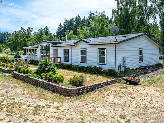 Bring your horses or livestock and enjoy the "Incredible views" from the many windows looking out front from this lovely home. The home has spacious rooms throughout. Primary includes an attached office/nursery and W/I Closet. See through fireplace graces the living room and family room off kitchen. Kitchen has laminate flooring with a slider out to a covered, wrap-around porch. Kitchen island is tiered with large eating bar and cooktop. Fiber cement siding on front. Double paned vinyl windows. Charming garden has sprinklers in front yard. 36x60 BARN and 18x12 lean-to for horses or any other farm animals! Barn includes 4-8 stalls, enclosed tack room, hay storage bay, drive through, stall access to pastures. Pastures cross-fenced with Frost-proof spigots in each. Long private/gated driveway to reach the homes very quiet existence. One section of the property is a lovely grove of firs and the expansive sideyard is sunny for growing your garden. This property is very beautiful and unique - you will not want to miss it. Minutes to access Beaverton and Hillsboro. LOCATION LOCATION LOCATION?. Low property taxes!