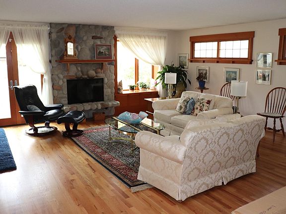 Three-bedroom, 2.5-bathroom rambler; former two-car garage converted to custom-remodeled family room. Hardwood floors throughout, except for carpeted bedrooms. Three sets of French doors opening onto remodeled patio and yard, respectively.