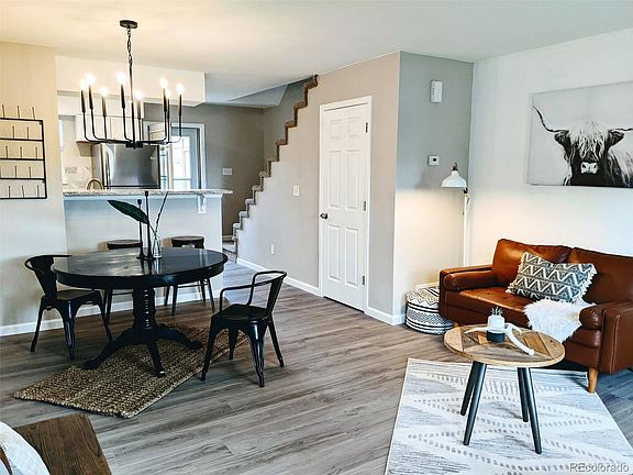 Completely remodeled 3 BD/2 BTH townhome in the popular Town & Country Village neighborhood boasting granite countertops, luxury vinyl flooring and new carpet throughout. Walk to shops, restaurants, the library, PACE center and public transportation. Enjoy the green space behind and in front of the home, a private backyard, and the convenience of being right across the street from the community pool. 1 reserved parking spot. Property features new AC unit, gas water heater and furnace. Some furnishings negotiable if interested. Tenant responsible for gas and electric. Water, trash, lawn, and snow removal covered by landlord. Small dogs ok with approval of Landlord and non-refundable pet deposit. No cats. No smoking. Credit check, background check and references required. Landlord is a licensed agent in the state of Colorado. Townhome available 11/1. Please inquire for application and to view the property. Horizontal iron stair-railing to be installed this Fall/Winter. Cooperation of tenant is required to accommodate installation. Mulch to be added to backyard prior to possession. Text preferred.