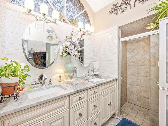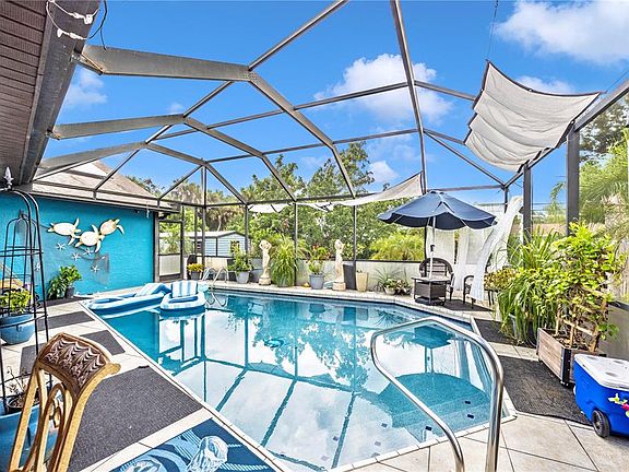 Step into this beautifully remodeled 3-bedroom, 2-bath, pool home that truly has it all! Major upgrades include: 50-Year Roof (installed June 2019), 3-Ton AC Unit, Double-Pane Windows & Sliding Glass Doors (2018), Fully Resurfaced Pool (2023), Hurricane Shutters (2023), Hurricane Rated Garage Door (2023), Surround Sound System (inside and in lanai), Fresh Exterior Paint (2025), and Solar Panels (2021). Inside, you'll find 18" tile flooring throughout, separate living spaces (east & west wing) with large owner's suite, kitchen has stainless steel appliances (dishwasher 2025) & granite counter tops. Access from pool area directly to primary suite, great room and hallway bathroom. Outside, enjoy your own private oasis a 20x15 Shed (equipped with electricity), sprinkler irrigation system, security cameras, and professional landscaping, epoxy garage floor. Convenient Location, close to schools and shopping! Don’t miss this move-in ready home—designed for comfort, style, and true Florida living!