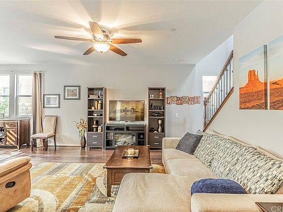 Decorator sharp, detached home is located in the gated community of Valle Di Oro. This amazing home has an open floor plan and is beautifully upgraded with custom paint, upgraded stair banister, hardwood and tile flooring, recessed lighting, and has ceiling fans throughout. The chef's kitchen features a large island, mocha cabinetry, granite countertops, an oversized pantry, stainless steel appliances and has a "touch" faucet. The spacious, master suite has custom neutral paint, a ceiling fan and walk-in closet. The ample en suite bath has a dual sink vanity, soaking tub and separate shower. The two additional bedrooms are generously sized, have decorator paint colors, ceiling fans one has a walk-in closet and the other, has a mirrored sliding closet. The interior laundry room is conveniently located upstairs and has an abundance of cabinet and counter space. At the top of the stairs, there is a fantastic flex area that is perfect for a home office or remote learning space. There's a direct access, two car garage that has attached storage for all of your extras. The private backyard has been professionally landscaped and has a beautiful covered patio, a raised gardening bed and is complete with fruit bearing lime, pear, peach and apple trees! This private community has amazing resort like amenities including a beautiful pool, spa and bbq area. Valle di Oro is ideally located with easy access to the 14 freeway and to the Cross Town Connector. Low HOA***NO MELLO ROOS**.