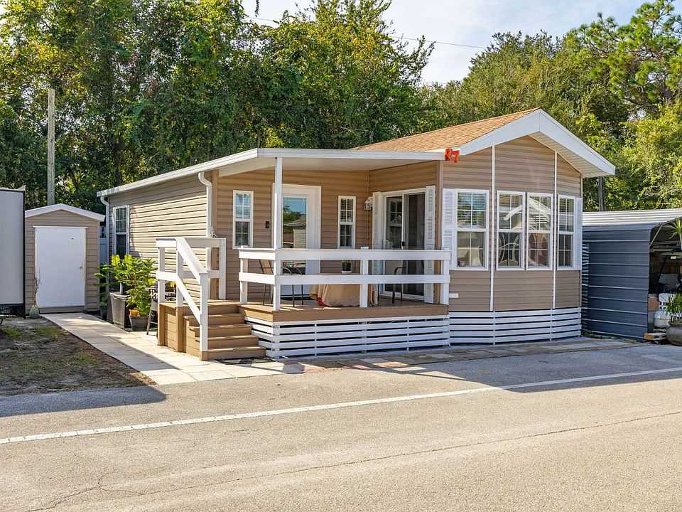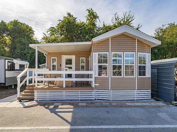 Discover this fantastic partially furnished 2-bedroom, 1-bathroom home located within a desirable all-age community in Kissimmee. Enter through a charming front porch that leads you into a bright living room. The home features two comfortable bedrooms, a full bathroom, and a spacious kitchen equipped with a propane stove. The dining room offers lovely natural light from windows that face the front of the home. This home also comes with a durable shed. The true highlight is the incredible value provided by the monthly lot fee: for just $950 per month, your lot fee is an all-inclusive package covering water, sewer, trash, professional lawn care, and even Wi-Fi. Residents also gain access to fantastic amenities within this secure, gated setting, including a sparkling pool, convenient laundry facilities, a clubhouse, playground, gazebo, and shuffleboard. Enjoy unparalleled convenience to shops, restaurants, Downtown Kissimmee, major roads like US-192, Osceola County Heritage Park, Silver Spurs Arena, Valencia College, Fortune Road Athletic Complex, and Central Florida's famous theme parks! This hidden gem offers exceptional value and convenience and absolutely will not last. Call for a showing today!