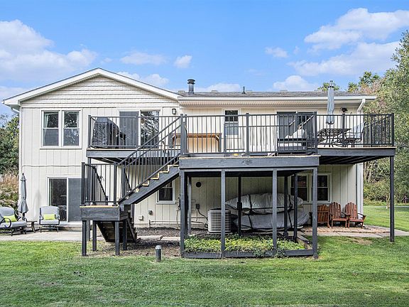 Gorgeously maintained home on Portage Creek. 4 bedrooms, 3 full baths including a primary ensuite. Updates throughout with delight and charm maintained. The kitchen is to die for with a walkout slider to the brand new and absolutely massive, multi-level deck to enjoy the waterfront view! Set on almost a half acre of lush lawn, it's truly a paradise. The exterior was just professionally painted just this year. 2 car garage includes a work bench and storage area. Generator hook up all in place. Well water, City Sewer. Located on a private drive in the heart of all that Portage. Schedule your showing today before this gem is gone to someone else!