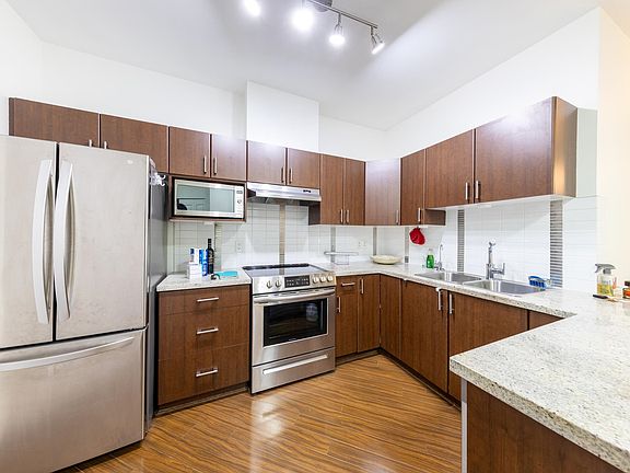 Bright one-level homeUpgraded bedroom carpetKitchen boasts granite countersRich cabinetryStainless appliancesPrivate covered balconySouthwest exposure