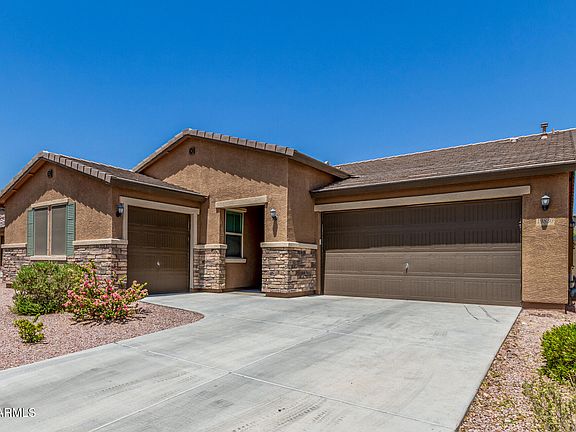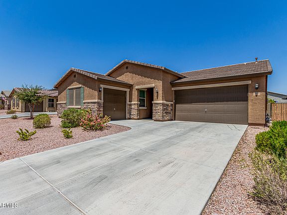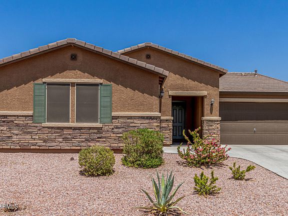Desirable Arroyo Seco 4-bedroom home is now on the market! Inviting curb appeal, featuring a manicured landscape and a 3-car garage! The interior showcases tile flooring, tons of natural light, and a neutral palette. The open-concept kitchen boasts espresso cabinets, tile backsplash, granite countertops, stainless steel appliances, and an island perfect for quick meals and casual conversations. All bedrooms feature carpet for added comfort. The primary retreat has a walk-in closet and a bathroom with double sinks.. Enjoy relaxing in the lush backyard, which features and extended patio cover, and low care turf . Enjoy lots of area amenities, close to Verrado, and easy freeway access. What are you waiting for? Come see it before it's too late!