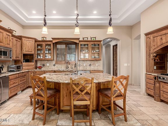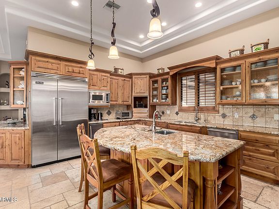 The essence of Arizona Luxury Living in Prestigious Pasqualetti Mountain Ranch. Set on an expansive 1.2-acre private estate surrounded by sweeping mountain views. A massive standalone workshop/RV garage of 1200 sq. ft. Total sq ft of 5500. Whether you envision an impressive hobby space, a dream car collection showroom, or a fully converted apartment/casita, this versatile structure offers unlimited potential to bring your vision to life. Also enjoy the full size & length RV garage. This home delivers the space, privacy, and craftsmanship today's luxury buyers crave. Step inside to find a thoughtfully designed floor plan featuring 4 spacious bedrooms, 3.5 baths, a dedicated office, and an additional den. Not to mention an Ensuite W/separate entrance. (Click on More The landscaped backyard showcases fruit trees, vibrant roses, and colorful flowers, creating a peaceful oasis with picturesque views in every direction. And with over an acre of usable space, you'll have room to design the outdoor paradise you've always imagined, whether that's a resort-style pool, pickleball court, or anything else your creativity inspires. Luxury acreage living, unmatched workshop options, and postcard-perfect views, this Pasqualetti Mountain Ranch estate is the kind of home that rarely becomes available. Don't miss your chance to make it yours.