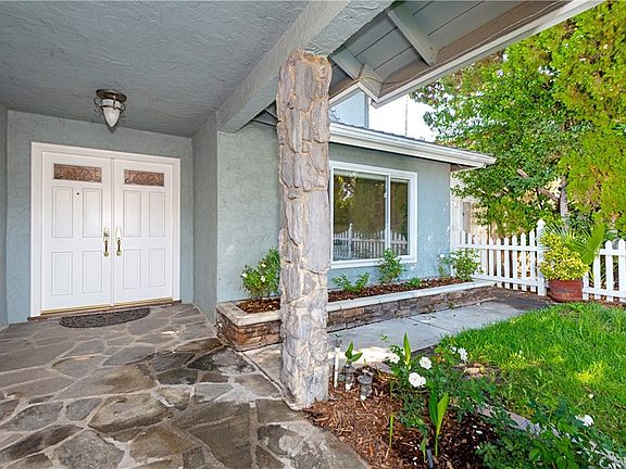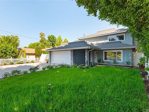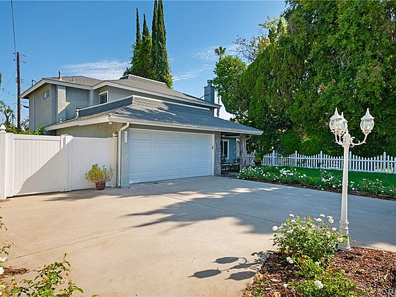 This charming home is tucked away on a peaceful cul-de-sac and greets you with a white picket fence, fantastic curb appeal, manicured lawns, beautiful stone accents and double door entry. On the inside, gorgeous design and modern luxury will make you want to stay forever. This unique two-story home features four bedrooms, three baths and a voluminous layout made for entertaining. The sweeping open floor plan with hardwood flooring and a gorgeous stone fireplace creates a dramatic focal point of the main level. The stylishly efficient kitchen and dining area flow effortlessly out to the alfresco patio and large, private backyard, ideal for gatherings and relaxing. The three bathrooms, including the first-floor bath with a jetted shower, ensure a streamlined routine for the entire family. At the end of the day, retire to the decadent master; a pampering showpiece complete with a generous layout and dedicated en suite bath. Additional features in this welcoming residence include dual-pane windows, direct two-car garage access, full copper pluming and central heat/air. On the side yard you will benefit from a sliding gate for RV access. The home is conveniently located near "The Village" in Woodland Hills and Pierce College.
