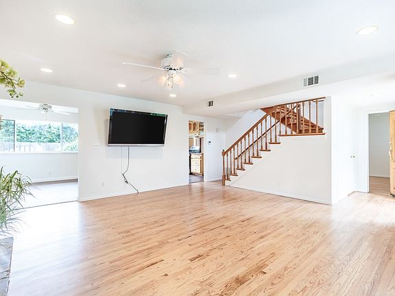 Nestled in Chatsworth resides a very charming property! This is a freshly painted home with a double door entry into a 3-bedroom, 2-bathroom floorplan with 2,497-SqFt of living space. The home offers newly painted interior walls, dual pane windows with shutters and skylight windows that bring in lots of natural light, along with an HVAC and ample storage space. Bathrooms have vinyl plank floors, and the rest of the home has original, refurbished hardwood floors. There are 2 fireplaces, one in the living room and one in the den. Enjoy creating meals in spacious kitchen with a breakfast area and new appliances that includes a dishwasher and stove/range hood. A level down from the kitchen find a dining room and a large, family room with a fireplace, beamed ceiling and skylights that brings in lots of natural sunlight.