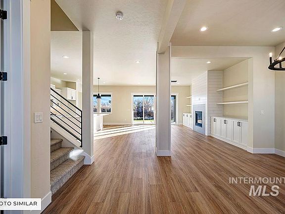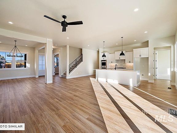 Under Construction - The Ponderosa by Sterling Homes emphasizes space and functionality with gorgeous appeal. The spacious open concept creates an effortless flow for everyday living and entertaining led by beautiful and durable luxury vinyl plank flooring. Beautifully finished and equipped gourmet kitchen features built-in stainless steel appliances (including dual wall ovens), soft-close cabinets with stylish hardware, and brilliant quartz countertops. This exquisite two-story design offers a luxurious main-level primary suite and office, with additional bedrooms and loft/bonus upstairs. Smart home upgrades include: CAT-6 wiring, mesh whole house wifi system, 5.1 audio system, built-in speakers on back patio, smart thermostat, and energy-efficient furnace and A/C. Photos are for representation only. Stunning large lot with spacious back and side yards. This homes garage differs from the photos and includes an RV garage bay (& plenty of room to store toys). Indian Creek Ranch is Kuna's first resort-style waterfront community in the land of open skies. Nestled along Indian Creek, the community features a waterfront park, walking paths, playground, pickleball courts, and pool.