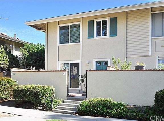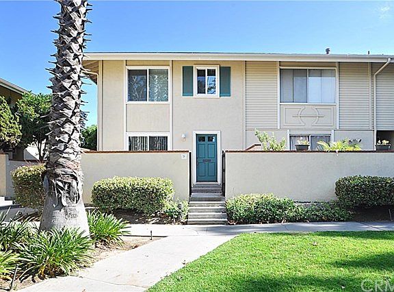 Great end unit. Offers 2 bedrooms, 2 1/2 baths, all fresh paint throughout, new double pane sliding doors and all windows, new window covering, new laminate floor, new oven, new adjustable awing at back patio. Unit offers private laundry room, an enclosed patio at the front of unit and large viewing deck from kitchen and dining room, attached 2 car garage with direct excess to unit, and newer central heating unit and air conditioner. Community Pools. Centrally located to freeway and shopping.