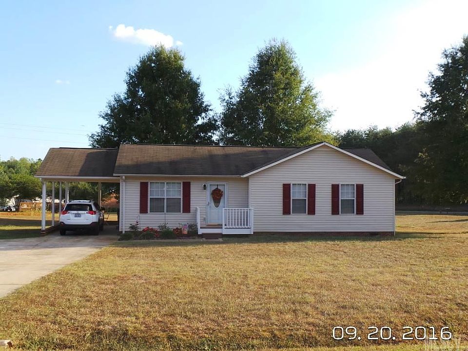Wonderful Starter Home! One Level Ranch with Three Bedrooms and Two Full Baths. Open Eat in Kitchen with lots of Cabinets. Range, Dishwasher and Refrigerator all Remain. Spacious Living Room with Cased Opening looking into the Kitchen. Carpets and vinyl flooring only 4 years old. Updated vanities , towel bars, mirrors in both baths. Move in condition. Single carport attached. .52 level lot. Big backyard with outbuilding. Won't last long! Buyer replaced the HVAC's compressor, capacitor, and fan motor in 2012. Well and Septic. Septic was pumped in 2014. Property will qualify for RD 100% financing or FHA 96.5% loan.