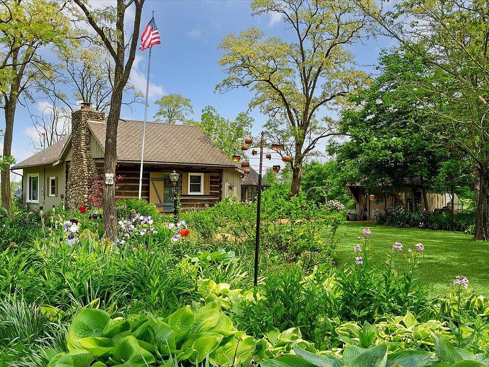 Live in a storybook house in a magical setting! 200+ yr old log cabin with American Chestnut logs. Moved to the site from Zanesville Ohio in 1970. Main house built in 1970. Fireplace fieldstones from surrounding land. Stay warm in the wintertime by the QuadraFire woodburner. Main floor has bedroom with a magnificent view of the pond, full bath, living room, sitting area, office, and eat-in kitchen. 2 large bedrooms upstairs. Step from kitchen to screened porch and front porch. Gardener's paradise: greenhouse, potting shed, raised bed garden, asparagus bed, pond, lots of flower beds and herbs, etc. Outbuildings: original smokehouse (building beside greenhouse), garage, barn and newer shed.