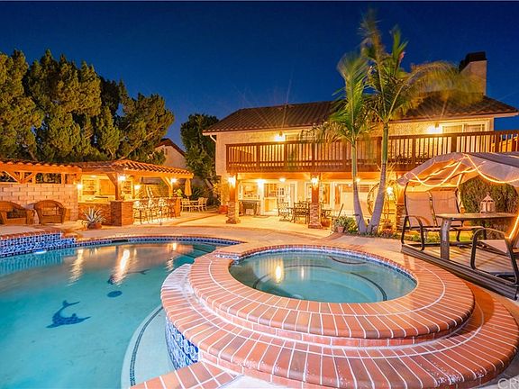EXQUISITE CHATSWORTH ESTATE nestled on a quiet cul-de-sac street & sits on a huge 17,934 SF Lot. As you enter, you're greeted with a spectacular open floor plan with high vaulted ceilings expanding over your formal living room, and elegant staircase & flooded with tons of natural sunlight. A gourmet kitchen with granite counter-tops, back splash, lots of cabinets, island, and breakfast bar that leads to the large family room that offers a beautiful fireplace, and built in wet bar perfect for entertaining family and friends. Downstairs is a bedroom with a slider leading to the back patio. It can be used as an office, guest room or for your in-laws, 2 convenient guest bathrooms, and laundry room. Upstairs there are 4 bedrooms including an master retreat with high ceilings, massive walk in closet, deep soaking tub, dual sinks, gas fireplace, & glass slider to a private balcony. There is also a 2nd master bedroom with walk in closet and private bath, a gorgeous large loft with a built in wet bar, and a beautiful remodeled bathroom down the hall. The entertainer's backyard has a sparkling pool & spa, tennis court, custom built outdoor kitchen & bar seating & huge sit in fire pit, perfect to entertain everyone all year round. A 3 car attached garage with direct access & solar panels (purchased). This home truly has it all, sophisticated, well designed for the whole family. A true paradise! Conveniently located to Porter Ranch, The Vineyards, CSUN and the 118 Fwy. Welcome home!