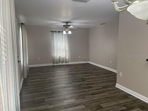 Move in Perfect! This CORNER homesite welcomes you to the front porch and into this clean home ready for your family. The freshly painted door opens into the living room and dining room with large windows to let in the natural light. The kitchen has a breakfast bar overlooking the dining area for an open floor plan great for entertaining and family dinners. The main bath is set back from the hall and here you'll find the inside laundry area and a large closet/pantry. NEW VINYL PLANK Flooring with NEW BASEBOARDS thru-out and ceramic tile in bathrooms and kitchen. NEW blinds, NEW curtains in living room. With FRESH PAINT inside and outside, fenced area for the dogs to play this home could be perfect for you! The shed is perfect for storing bicycles, tools, and lawn stuff. Centrally located for easy access to Land O Lakes, Brooksville, Wesley Chapel, New Port Richey and Hudson and near the Suncoast Parkway.