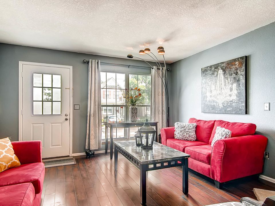 !!!!! OPEN HOUSE!!!!!! This Sunday, 7/31/2016 from 10-2 Gorgeous, move-in ready 2 bedroom, 2.5 bath town home, boasts a nice size eat in kitchen, beautiful living room with cozy rock fireplace, all new hardwoods, carpet and paint and some new fixtures too! There is a small privacy fenced back yard for your grill and patio furniture (and fur buddies). The unfinished basement can easily be finished to make an additional bedroom or family room, with rough-ins already in place. The Town and Country neighborhood offers a community pool and it perfectly situated to take advantage of small town living! Walk to the new Parker Library and the Award Winning Pace Performing Arts Center, fine dining and shopping too! There are miles and miles of hiking and biking trails, and the community Water Park and and O'Brien Park with huge shade trees, basket ball courts, baseball diamond and picnic tables will offer something for everyone!