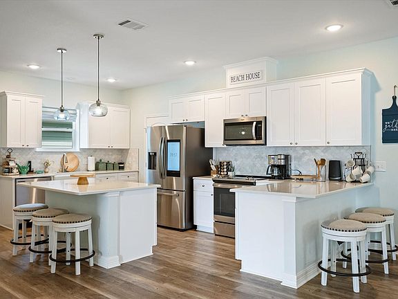 Views of the beachQuartz countertopsOversized islandsFarm sinkRefrigerator with family hub