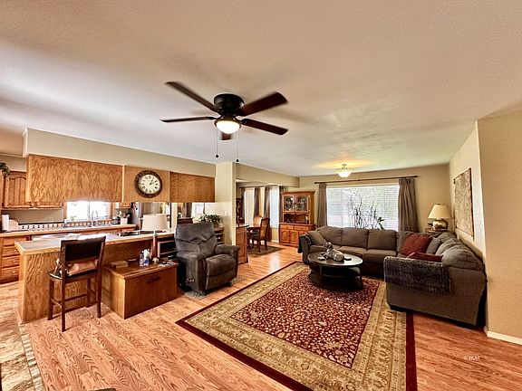 Welcome to this beautifully updated single-level home, featuring 4 spacious bedrooms and 2 modern baths within 1,936 sq ft. As you enter, you'll be greeted by an inviting open living room, complete with a cozy wood stove fireplace that adds warmth and charm. The kitchen boasts updated wood cabinets and newer appliances, offering both a formal dining area and an eat-in kitchen with a large breakfast bar ideal for casual meals. Down the hall, the main bedroom features a generous walk-in closet and a luxurious updated bathroom, with direct access to a stunning patio perfect for relaxation. Three additional well-appointed bedrooms share another updated full bath, ensuring ample space for family or guests. The large laundry room adds convenience to daily living. Step outside from the living room to a covered patio, perfect for entertaining, complete with a hot tub for great entertainment space. The backyard also includes a shed and a greenhouse, enhancing the outdoor experience. Freshly painted inside and out, this home boasts a newer roof, furnace, water heater, and modern lighting. It's move-in ready and a must-see for any potential buyer!