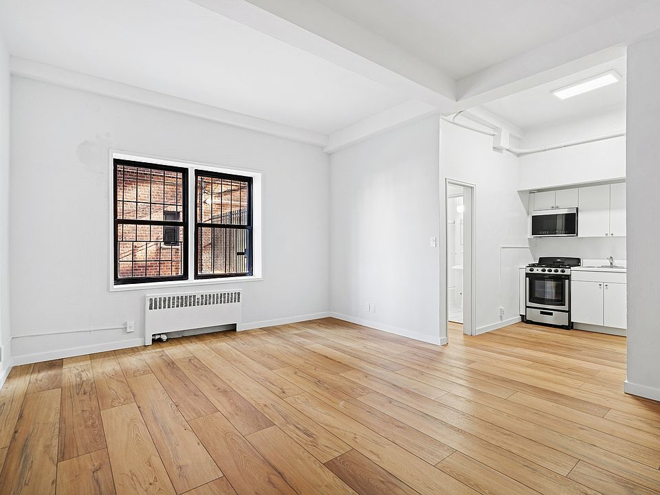 Bright studio apartment located in the University Heights neighborhood in The Bronx. Apartment features hardwood floors and a renovated kitchen with stainless steel appliances. River Hill Gardens is a serene, beautifully manicured community offering modern amenities like an elevator, fully-equipped laundry facilities, and on-site parking. Please note photos and floorplans are for illustrative purposes only. Images may reflect either a model unit or comparable apartment with a similar layout and/or finishes. The actual apartment may slightly differ.