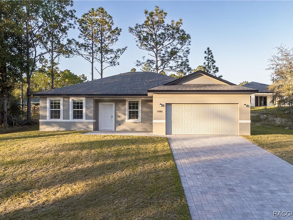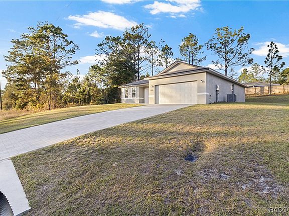 Brand new construction with an amazing location, near the Withlacoochee State Trail - Gulf Junction Trailhead on a nice and quiet street. With not one but TWO SUITES, this move-in ready contemporary home offers the perfect blend of modern design and practical living, featuring four spacious bedrooms and three beautifully appointed bathrooms. Step inside to find an upgraded tile flooring throughout, exuding a sleek and elegant ambiance. Each bathroom is meticulously crafted with luxurious finishes including porcelain tile inside the shower space, adding a touch of sophistication to your daily routine. The outdoor space is equally impressive, with a covered lanai, a generous yard and a one of a kind paved driveway, excellent option for entertaining or basking in the glorious Florida sunshine. Perfectly situated near schools, parks, and all essential amenities, this property promises a lifestyle of convenience and accessibility. Don’t miss your chance to be the proud owner of this gem in Citrus Springs!