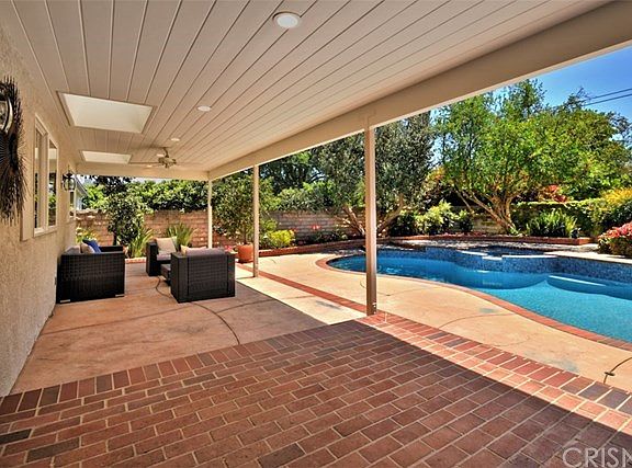 Absolutely fantastic home, Located on a very sought after area of Chatsworth. This Tastefully remodeled Cape Cod Pool home boasts 3 Bedrooms and 2 Bathrooms Plus an 800 Sq. Ft. Additions. Spacious, open concept kitchen with abundant Cabinets, granite counters with full matching granite back-splash. The added convenience of the adjoining dining area that is graced by the beauty of new milgard windows and pool views. The cozy Living room is drenched in natural light that is let in by the custom beveled windows accenting the elegant Oak hardwood floors, and fireplace. Spacious master suite with plenty of closet space. Jack & Jill bathrooms with tiled shower and dual vanities and sinks. / Kitchen Custom Omega Oak cabinets / Custom Levolor shades / Newer Doors / Copper Plumbing / Dual HVAC Systems / Custom California Deluxe windows / New Milgard Windows / Custom Shutters /40 year Roof / Peble tech Pool & Spa / Garage Finished dry-walled / Recessed lighting / 1 fireplaces /800 Sq. Ft. Addition / Home Alarm system ESS / Electrical and sub-panels / Raised covered patio and so much more. Prime location close to grocery stores, Northridge Fashion Center and entertainment. Information here is deemed reliable but not guaranteed buyer(s) to rely on own findings and investigations