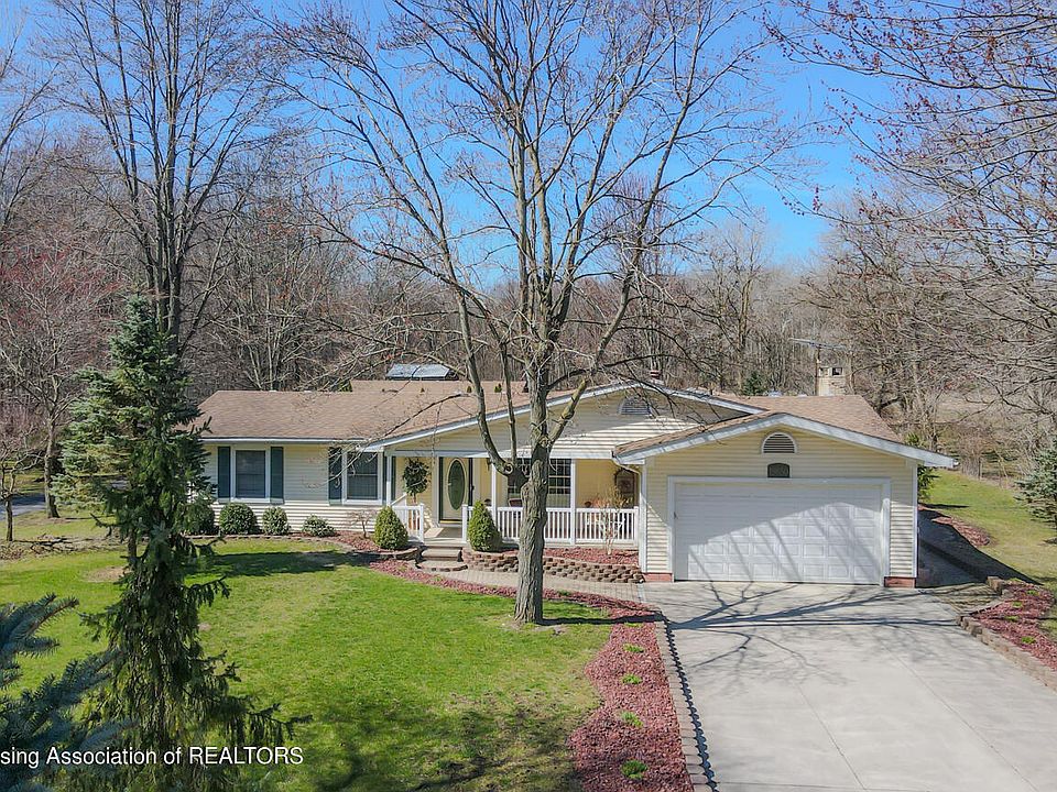 Huron Township/Huron Schools Ranch on 5 partially wooded acres with attached garage, detached three bay outbuilding, and historic barn. Nicely updated home with newer kitchen and 2.5 updated baths. The home features stunning hardwood flooring in the kitchen and family room. There are four bedrooms, one is a large owner's suite with ample closet space and a private full bathroom. There is a cozy front porch as well as large deck and paver patio areas in the rear yard. With over 2200 square feet of living space, there's room for everyone. Whether you're hosting family gatherings or enjoying quiet evenings by the fireplace, this home has you covered. This home has all the land and buildings for all of your hobbies. Agent is related to seller.