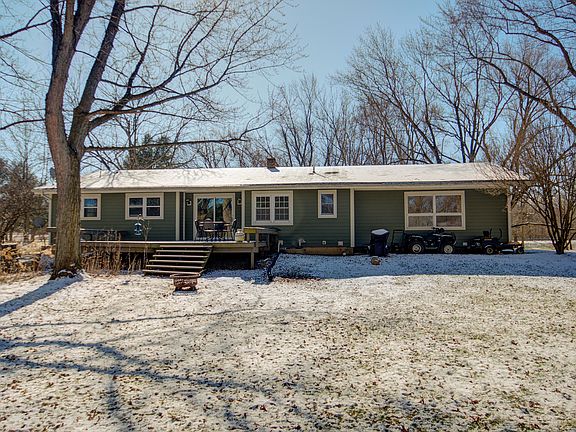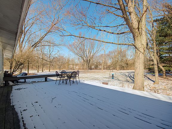 BEAUTIFUL SETTING! This is your chance to live in a gorgeous park like setting! This home sits on a picturesque nearly 5 acre wooded lot, with a creek running through the side and back of the lot! THE HOME IS NOT IN A FLOOD PLAIN, AND FLOOD INSURANCE IS NOT REQUIRED. Absolutely stunning in every season of the year! The home is a 3 bed, 1 1/2 bath ranch with a full basement. The family room is in the back of the home with windows overlooking the lovely property. Hundreds of beautiful perennials are planted amidst the landscaping. Most of the big ticket items have already been done for the new owner. Most windows were replaced in 2019/2020, maintenance free cement board siding in 2019/2020, HVAC and humidifier 2019/2020, water heater 2022, 200 amp electrical panel and new switches and outlets in 2019, newer custom front entry door, new barn door in entry hall, some new carpeting just installed. WOW! Roof, gutters, and downspouts were done by the prior owner in 2011. This is an AS/IS sale.