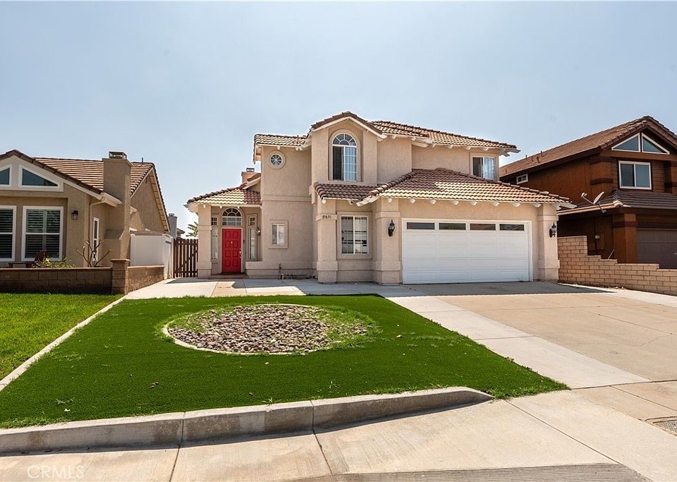 Gorgeous 3 bedroom, 2.5 bath home in the Orangecrest area of Riverside! There is a spacious living room , formal dinning space with high ceilings, a fireplace and large windows that let in abundant natural light. The remodeled open kitchen has lots of storage and prep space with quartz countertops. Downstairs flooring is LVP flooring and tile while the upstairs is carpeted. All of the bedrooms are large with great closet space, and the primary bedroom offers a huge vanity that has dual sinks, an arched doorway. A beautiful backyard is maintenance free with synthetic turf, hardscaping with rock detail and lots of seating space. The spacious 2 car garage has a small built in work area. Orange Terrace Community Park is just a few block away as well as a community dog park. Elementary school is down the street. A wonderful home inside and out.