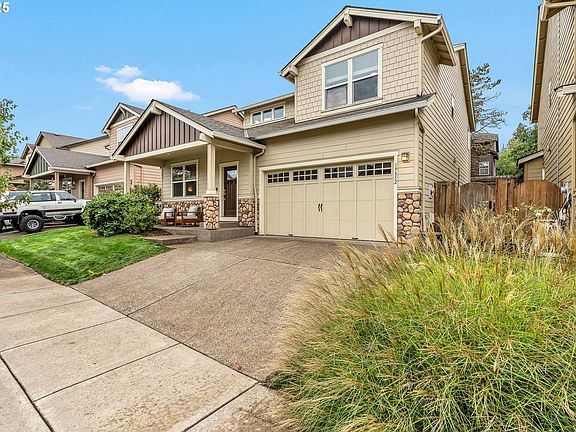 Fantastic location atop Cooper Mountain, this spacious 5-bedroom, 3-bathroom home offers a versatile layout with a rare main-level bedroom and full bath with shower. The vaulted formal living and dining rooms create an elegant first impression, while the open-concept kitchen, dining, and family room—with cozy fireplace—make everyday living and entertaining a breeze. The kitchen features granite counters and hardwoods, with oversized windows throughout filling the home with natural light. The vaulted primary suite includes a walk-in closet and ensuite bath with double sinks, soaking tub, and walk-in shower. Laminated flooring flows through the common areas, enhancing the modern appeal. Outside, enjoy a beautifully landscaped and fully fenced backyard with sprinklers, a covered porch, and plenty of space to relax or entertain. With central air and thoughtful design throughout, this home is a perfect blend of comfort, convenience, and style.