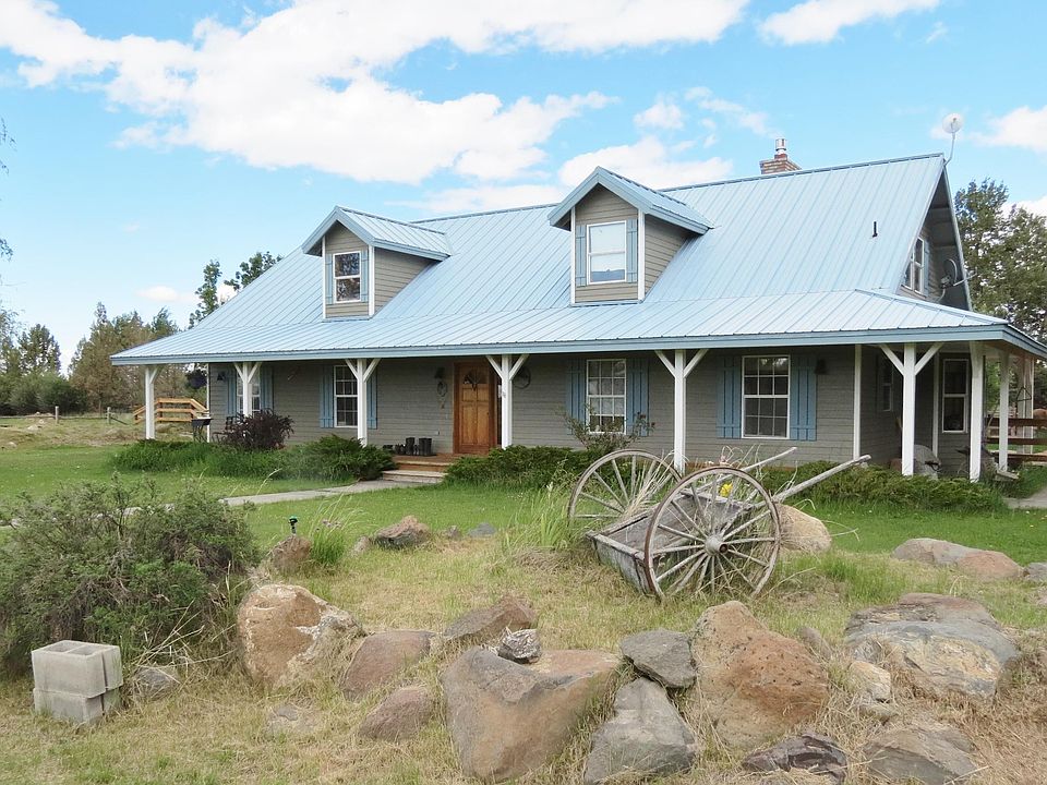 Tumalo Area Custom Home on 9.8 Acres in park-like setting with 5 Acres Tumalo Irrigation. 2736 SF home includes 3 bedrooms with master on the main, 2 baths, formal entry, living room with vaulted ceiling, open loft and family room upstairs, formal dining, kitchen with nook and separate laundry room. Detached 2 car garage, various outbuildings, fenced and cross fenced, round pen fenced back yard, and pond. Avion supplies Domestic Water. Home sits back from the main road. Property is 1/2 mile to the Deschutes River with great walking trails. Enjoy Sunrises on your back deck and Sunsets from the large front porch. Mountain Views!