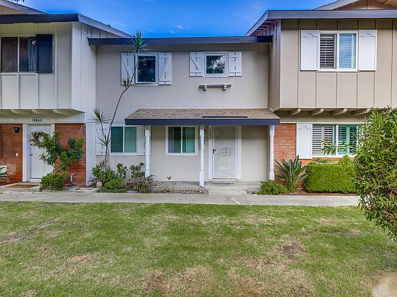 Recently updated Townhome with beautiful improvements including tankless water heater, new toilets, new flooring, lives like a single family residence, no one above or below and ideally situated overlooking a peaceful greenbelt in the desirable Village Townhomes community superbly located within walking distance of local schools and parks, and an abundance of dining and shopping including Whole Foods, The Original Pancake House, Sprouts, Kohls, CVS, Starbucks, Stater Bros Markets, Target, Subway, and MORE! This well-maintained community boasts excellent community amenities including a club house with meeting and banquet rooms, full kitchen, outdoor dining areas, sparkling pool and spa, lounging areas, lighted tennis courts, basketball courts, enclosed Playground, and expansive green spaces. Step through the covered front porch entrance into the home and soak in the light filled living space boasting recessed lighting, plantation shutters, sleek luxury vinyl plank flooring, a fresh neutral palette, and an open concept living area, all setting the stage for an ideal living environment. The spacious living area is open to the dining area with direct access to the patio creating a superb indoor-outdoor living space. The light and bright kitchen has timeless white shaker cabinetry, Quartz countertops, updated hardware and pulls, Stainless Steel undermount sink and faucet, like new 2022 Stainless Steel appliances, Refrigerator included, and a convenient laundry closet with full size washer and dryer. The main level includes a prized guest bathroom with updated vanity and toilet, and walk-in shower. The bedroom level upstairs has luxury vinyl plank flooring throughout, a beautifully updated full bathroom, and 3 bedrooms with recessed lighting. The private enclosed outdoor patio is a peaceful oasis, perfect for relaxing and BBQing with friends and family. Convenient direct access through the patio to the covered carport space in back. Just minutes from local beaches and easy 405 freeway access.