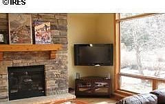 A perfectly framed Longs Peak view...Sounds of the Rambling River steps from your deck... Aspen groves & towering spruce trees...The setting you dream of for your perfect mountain home. Enjoy high quality finishes & craftsmanship throughout this former model home, offering an ideal floorplan for everyday living or memorable vacations. Greatroom w/stone fireplace & deck on the water, kitchen of granite & stainless, dining area looking downriver. Everywhere you turn, peace, quiet & tranquility...