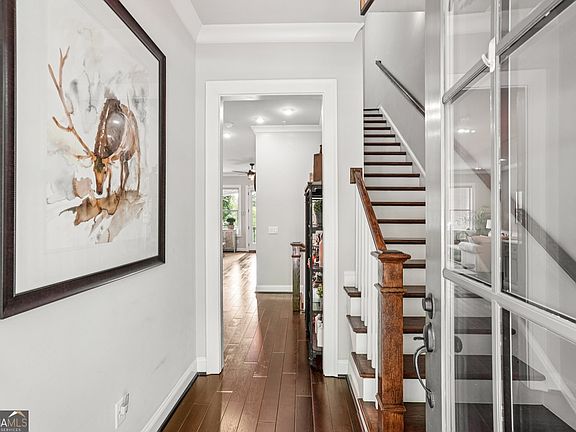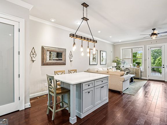 Luxury Townhouse in Encore Walk! Located in the heart of Alpharetta, this beautiful listing sits in an exclusive community of just 38 homes. Enjoy a bright and spacious floor plan with upgraded wood floors, custom built-ins, enhanced lighting, a custom kitchen featuring quartz countertops, a built-in island with ample storage, soft-close drawers and cabinets, and an expansive kitchen window boasting natural light and trees. The primary suite features a large walk-in shower and custom closet built-ins. The finished basement offers a versatile space for guests, work, or recreation. Perfectly positioned near Alpharetta staples - Big Creek Greenway, Ameris Bank Amphitheatre, Topgolf, and Avalon. This home delivers both style and convenience in a truly sought-after setting.