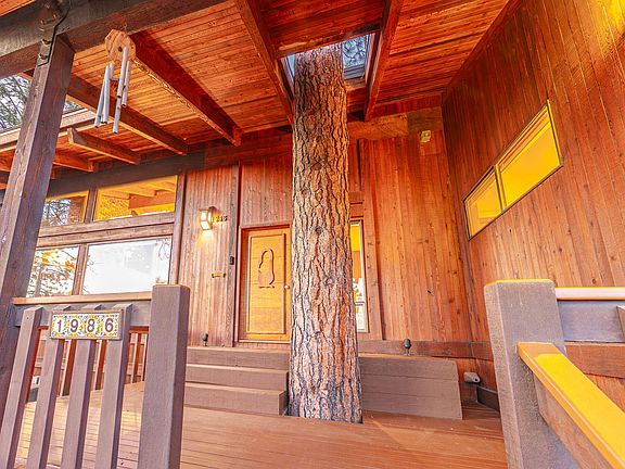 Special. Unique. A True Bend Sanctuary. Set on a large, south-facing corner lot framed by aspens & pine trees, this timeless home is filled W/ warmth, character, & peekaboo views of Mt. Bachelor. Designed W/ wood beams reclaimed from Bend's historic sawmill, it blends the charm of a Swiss chalet W/ the comfort of modern living. Inside, soaring vaulted ceilings, crystal chandeliers, & abundant natural light from large windows create an open, serene atmosphere. The main level features all beds, including a vaulted primary suite W/ deck access & hot tub.