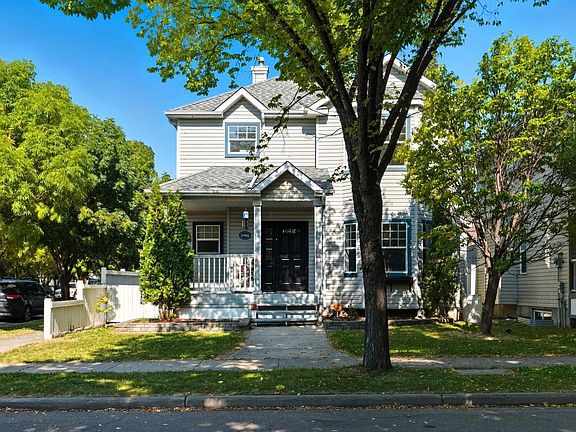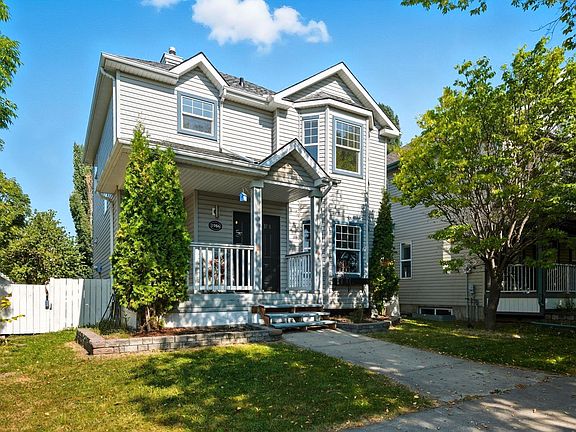 Victorian Charm Meets Modern Comfort! This eye-catching Parkwood-built corner home with its inviting front porch is full of character and warmth. Step inside to a bright, south facing living room with a gas fireplace and mantel that is perfect for cozy evenings. The kitchen offers plenty of space with its island, dining nook, and handy mudroom with main floor laundry. Upstairs, three bedrooms await, including a dreamy primary suite with a walk-in closet and soaker tub ensuite. The finished basement adds a family room, den, and rough-in for a future bathroom. Updates include a new roof (2024), furnace (2019), central air conditioning, and tankless hot water tank. Outside, the fully fenced yard and insulated double garage are ready for all your adventures. With no carpet (hello, easy clean laminate floors!) and steps to the gazebo park and walking trails, this home is a perfect mix of character, comfort, and convenience.