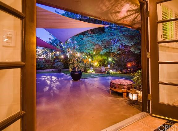 Whether you are entertaining many or enjoying quality time with family, this house rocks! Living, dining, family rooms & kitchen all flow together well. Outfitted in blonde toned woods the awesome open concept kitchen features a stainless steel Thermador Professional oven with matching hood, built-in refrigerator and center island. With an abundance of countertop & cabinet space, it s a chef s delight. The heart of this home is the spacious and inviting family room with raised ceiling, recessed lighting, and brick fireplace, Mother s, Father s, or Big game day, here is where the party begins! It s also well suited for the home theater/gaming enthusiast! Exit the family room past a panel of french doors to the gorgeous, peaceful, secluded & private backyard. Take in the scent of orange blossoms and listen to the birds sing while relaxing under the shady sail canopy. Two Seco palms border the entrance to a lower stone patio, its a great hideaway! Giant birds of paradise, Orange, Ginko and Kumquat trees create dimension. Ferns, palms and a fence covering of creeping fig plant ensure privacy and beauty.