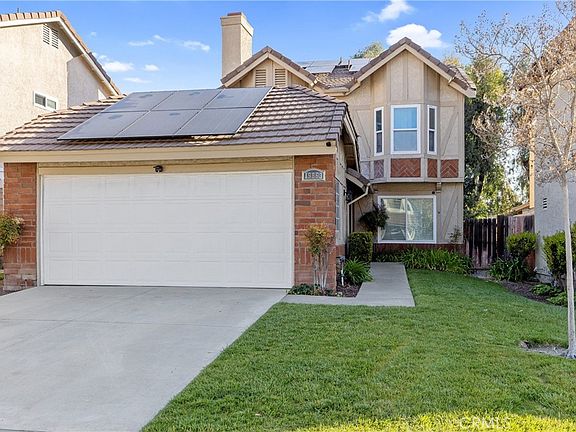 Welcome to this charming 4 BD 3 BA English Tudor home in Rainbow Glen, a sought-after neighborhood in Santa Clarita. This American Beauty Classic home is ideally located near shops, restaurants, and the freeway, offering convenience and accessibility. As you step inside, you'll be greeted by a spacious open layout with waterproof laminate vinyl flooring and fresh paint throughout. The living room is very spacious and features a cozy tile fireplace, creating a warm and inviting atmosphere. The kitchen, open to the family room, boasts granite countertops, stainless steel appliances, and a functional layout for easy entertaining. Upstairs, you'll find an extra-large primary bedroom with a walk-in closet that includes a vegas style bathroom and features a standing tile shower, separate jetted jacuzzi tub/spa and all new chrome fixtures. The additional three bedrooms are all over sized and perfect for kids and guests. This home is equipped with energy-efficient double-pane windows, solar energy, an updated furnace, and water heater, ensuring comfort and savings. Recessed lighting brightens up the space, and the copper plumbing adds durability and peace of mind. Outside, the private backyard is easy to maintain and features peach trees, creating a serene outdoor retreat. The step-down patio is perfect for outdoor entertainment and relaxation. The insulated garage with cabinets and a separate attic provides ample storage space and practicality. This home is nestled on a wonderful tree-lined street and benefits from an affordable HOA that includes multiple pools, parks, tennis courts, and basketball courts, offering a premium location with fantastic amenities. Don't miss out on this great opportunity to own a home in this popular community. Contact us today to schedule a viewing and make this your new home sweet home!