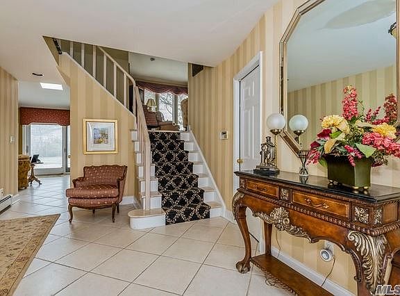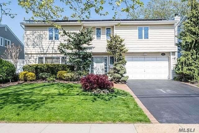 Stylishly updated open Splanch boasts EIK w/island, granite ctrs, undermount lighting, double wall oven, garbage disposal, instahot water, lrge dining rm, den w/fireplace & Andersen slider to patio, liv rm w/vaulted ceil, crwn molding, HW flrs, porcelain tiled entry foyer w/.5 bath, mstr en suite w/WIC & wall of built-ins, 2 addt'l bdms, 4th bdm used as mstr dressing rm, upd skylit baths, 1.5 car gar, bsmnt w/den/gym or office, +sep laundry rm, fenced yrd lrg enough for IGP, 53 solar panels leased (cheap electric!), CAC, IGS, Andersen winds/doors, no Sandy Damage, flood insur not required but assumable, 2,562 sq ft & blocks to both Julian Ln & MECA Parks, + busing to award-winning schools. '20 siding, '14 gas boiler w/sep HW heater, '11 roof, '15 Andersen windows & doors, alarm, Ctrl Vac, '21 & '22 tax grievance filed. Just unpack & move in to this pristinely maintained 4-level Splanch!